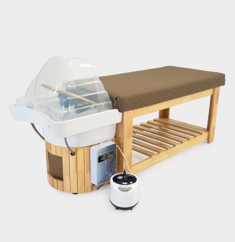 Myjka trychologiczna z funkcją sauny – stacjonarne łóżko do masażu i zabiegów HeadSPA