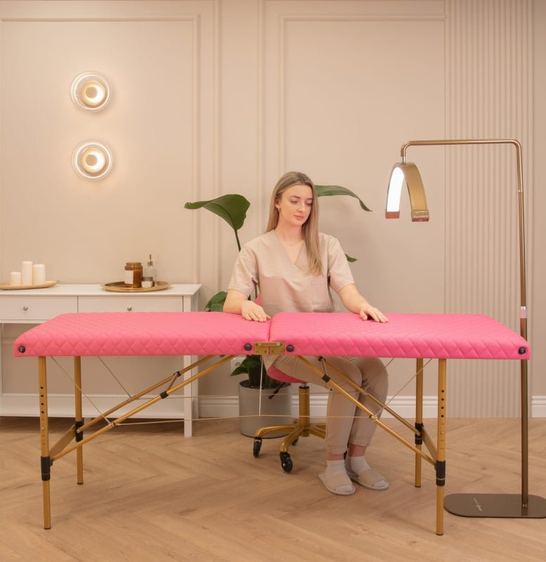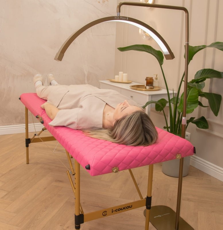 To profesjonalne łóżka kosmetyczne, które zostały stworzone z myślą o stylistkach rzęs i linergistkach. Zapewnią Tobie maksymalny komfort podczas zabiegów przedłużania rzęs czy makijażu permanentnego. Innowacyjna konstrukcja łóżek coucou SPACE, pozwala na swobodne ułożenie nóg pod blatem łóżka.