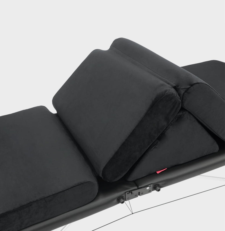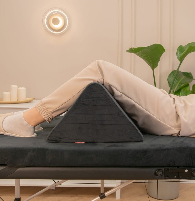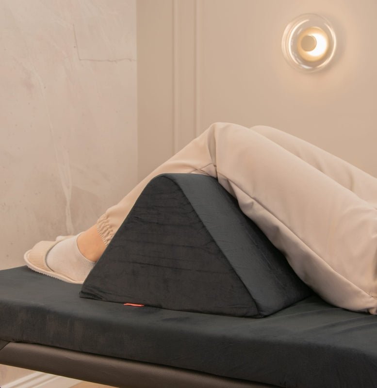 Trójkąt kosmetyczny i-coucou to praktyczna poduszka pod nogi, zaprojektowana z myślą o zapewnieniu maksymalnego komfortu podczas zabiegów wykonywanych w pozycji leżącej. Dzięki ergonomicznemu, trójkątnemu kształtowi podparcie nóg jest stabilne, co znacząco podnosi wygodę Klientek i wspiera prawidłowe ułożenie ciała. Umieszczenie poduszki pod odcinkiem kolanowym sprzyja rozluźnieniu mięśni i tkanek narażonych na napięcia, co ma szczególne znaczenie podczas długich zabiegów kosmetycznych, relaksacyjnych czy terapeutycznych.