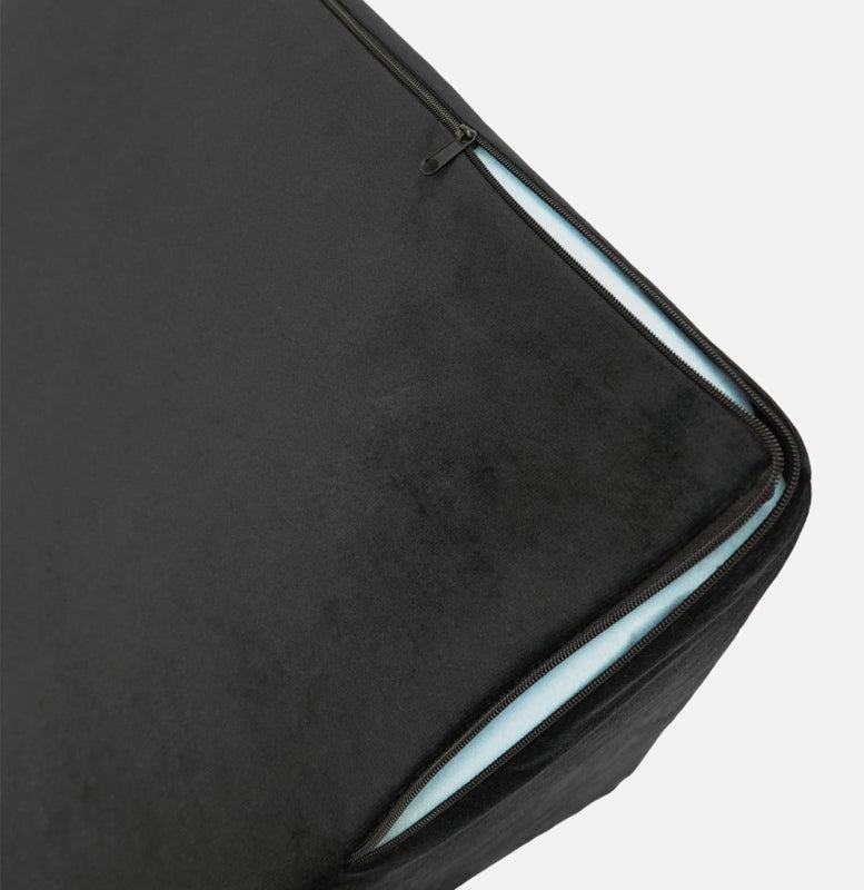 # Jego wkład wykonany jest z elastycznej, wysokiej jakości gąbki, a pokrowiec posiada praktyczny zamek błyskawiczny i jest wykonany z przyjemnego w dotyku weluru tapicerskiego.