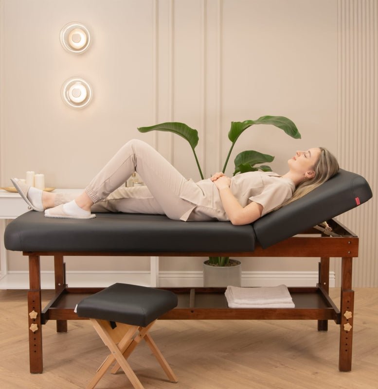 Stół do masażu stacjonarny drewniany Czarny - Ciemny mahoń