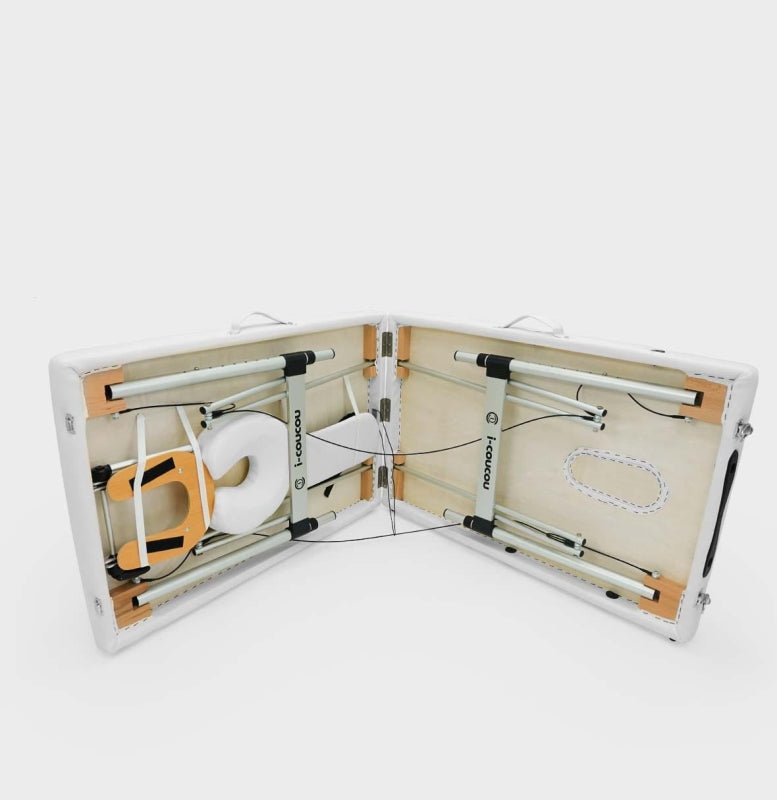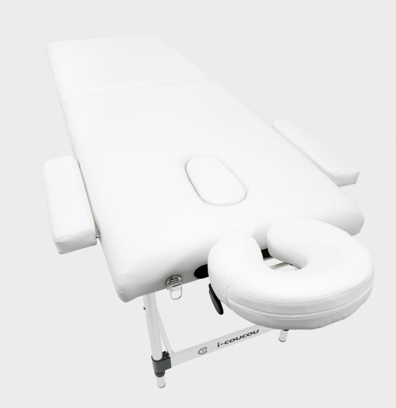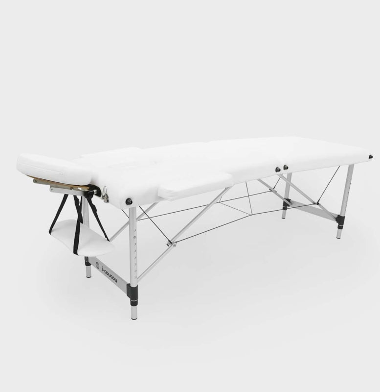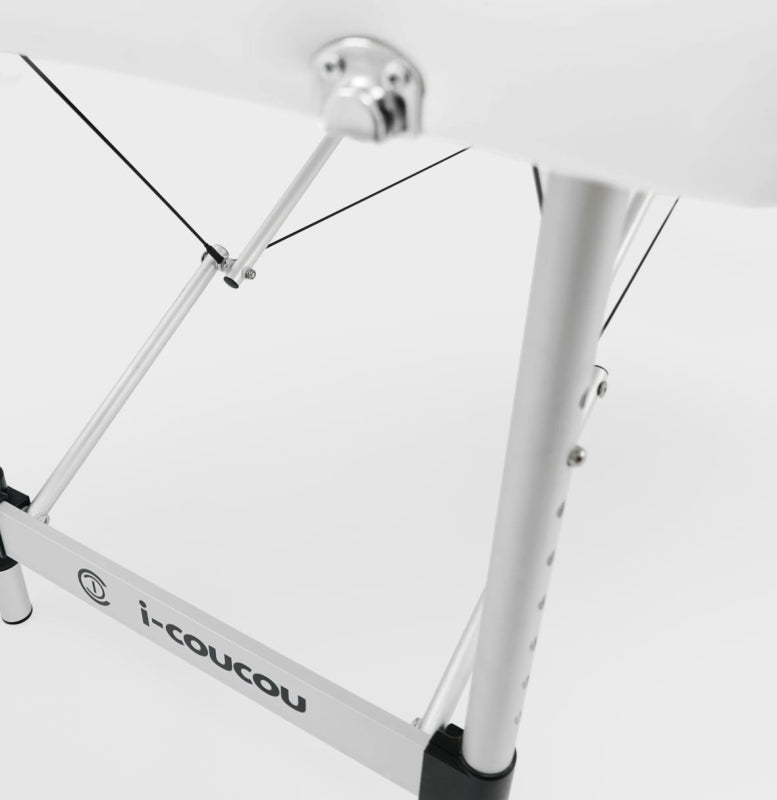Łóżko kosmetyczne i-coucou, które doskonale sprawdzi się do zabiegów kosmetycznych oraz w gabinecie masażu. Bardzo stabilne i lekkie dzięki aluminiowej konstrukcji oraz stalowych linek.