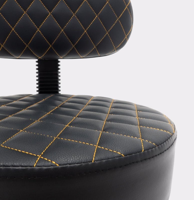 Pikowany taboret kosmetyczny płaski z oparciem Czarny - Złoty