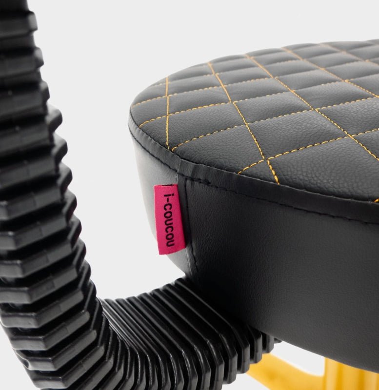 Taboret marki i-coucou został zaprojektowany z myślą o komforcie pracy w salonach kosmetycznych, fryzjerskich czy studiach tatuażu. Wyposażony w szerokie siedzisko wypełnione aż 7-centymetrową warstwą pianki tapicerskiej, zapewnia wygodę nawet podczas długich godzin pracy. Tapicerka wykonana z wysokogatunkowej ekoskóry, ozdobionej estetycznymi przeszyciami, jest nie tylko elegancka, ale także odporna na środki czystości, olejki i wodę, co ułatwia utrzymanie krzesła w idealnym stanie higienicznym.