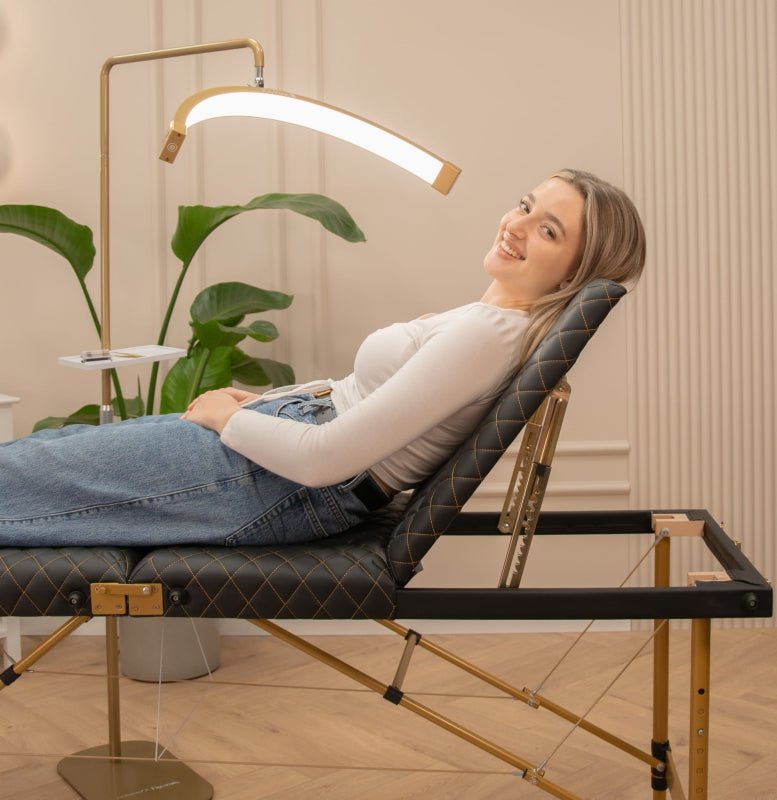 • Pikowane łóżko kosmetyczne do stylizacji rzęs Space Gold - Czarne - Studio Bay